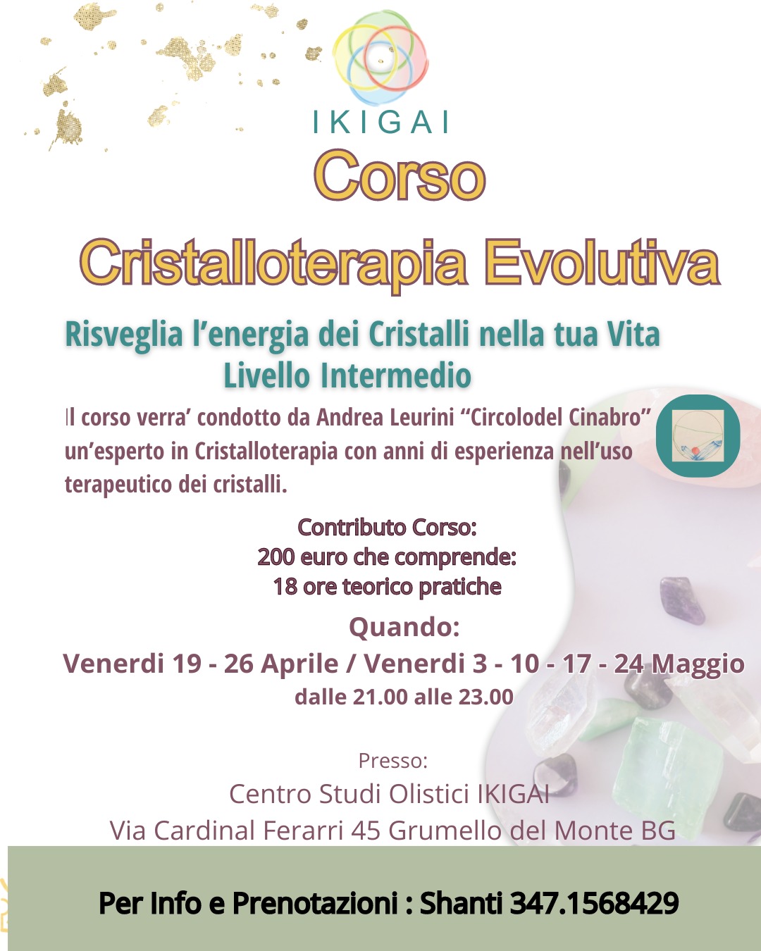 Riservato a chi ha già partecipato al corso Base di Cristalloterapia Evolutiva.